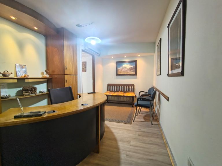 Dicha Oficina cuenta con una cómoda distribución y consta de: recepción con sala de espera y baño completo, 1 privado (amplio) y Cochera.-